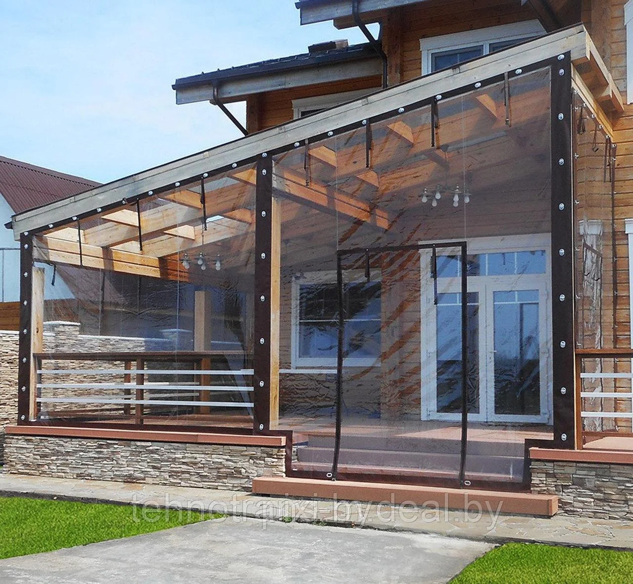 Используется для больших площадей: при сплошном или панорамном остеклении. Подходит для всех климатических зон. Изготовление мягких окон для веранд, беседок и террас на дачах, в частных домах часто заказывают именно из такого материала.